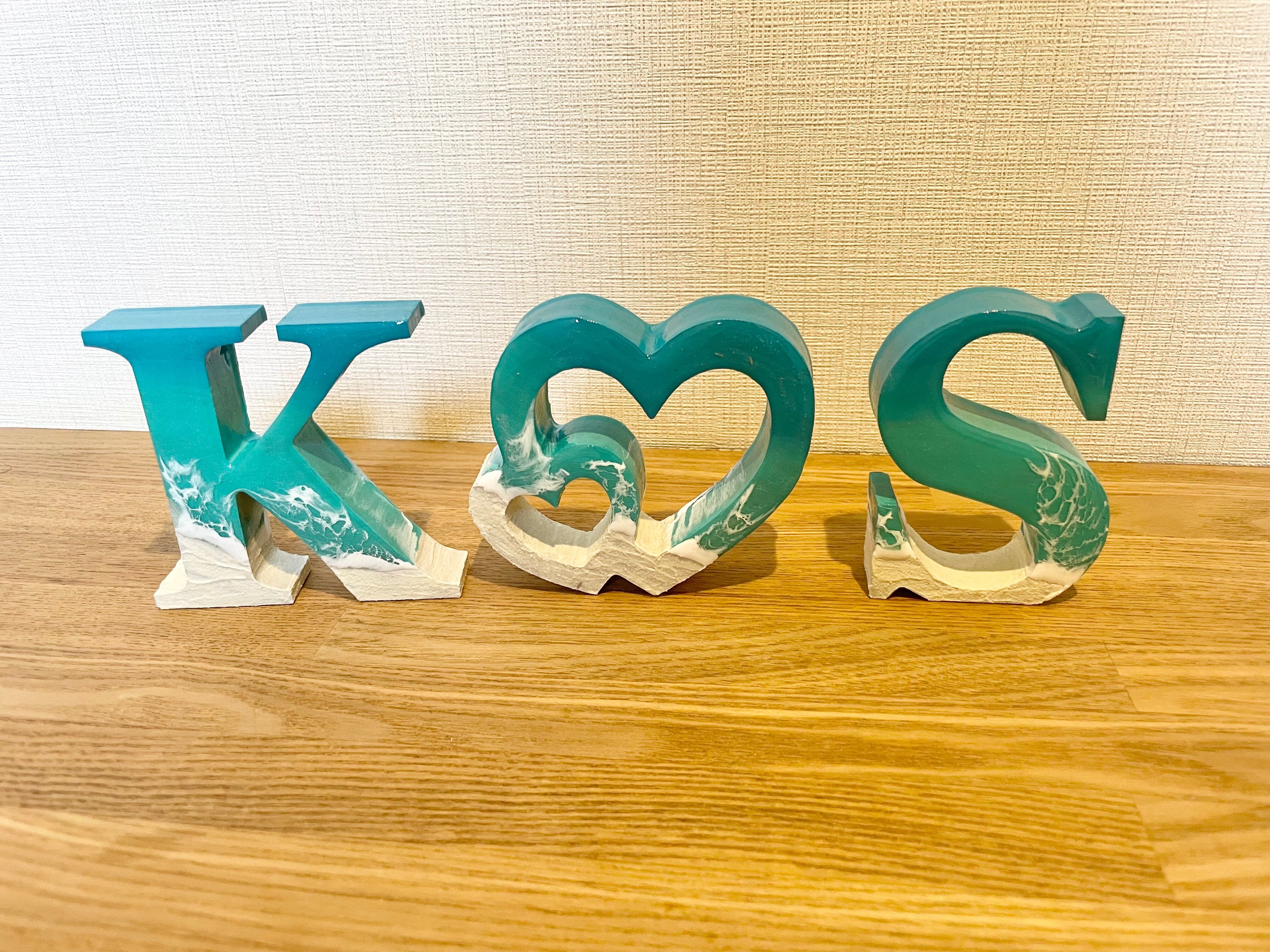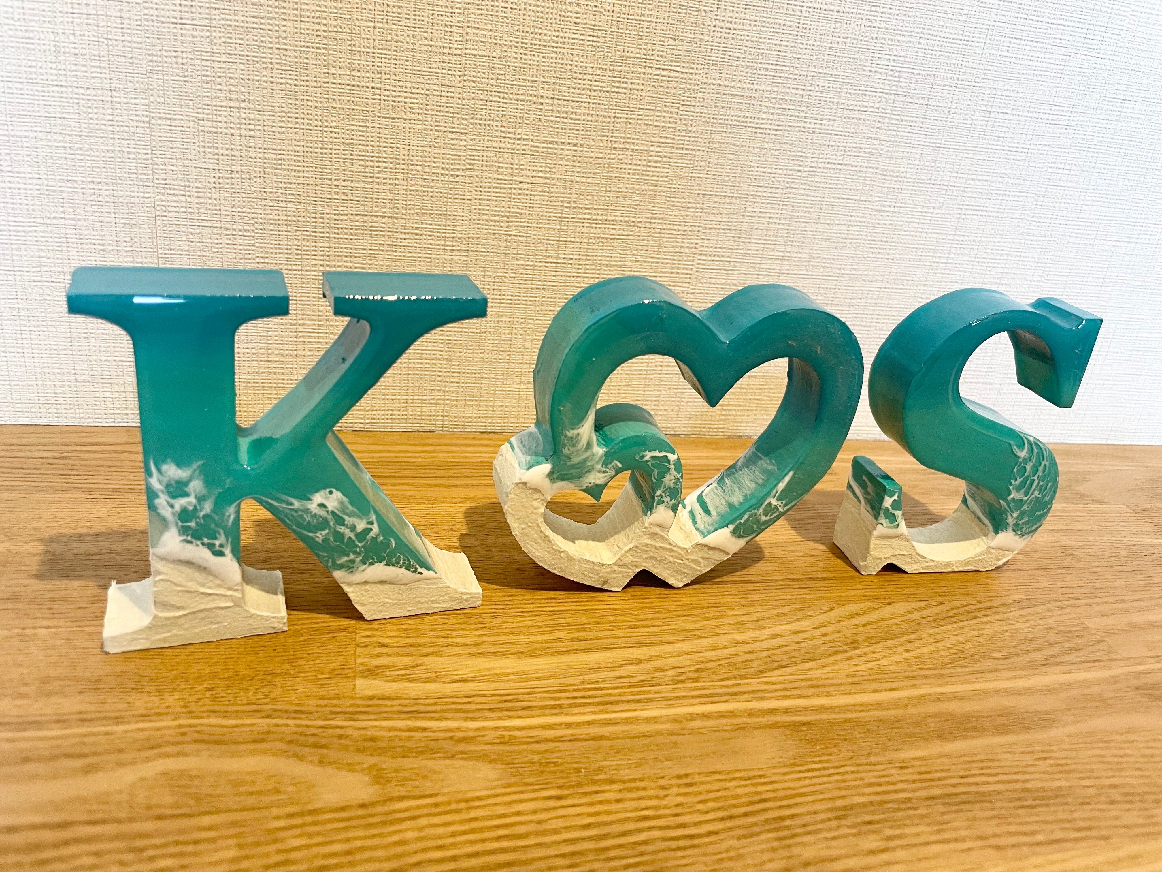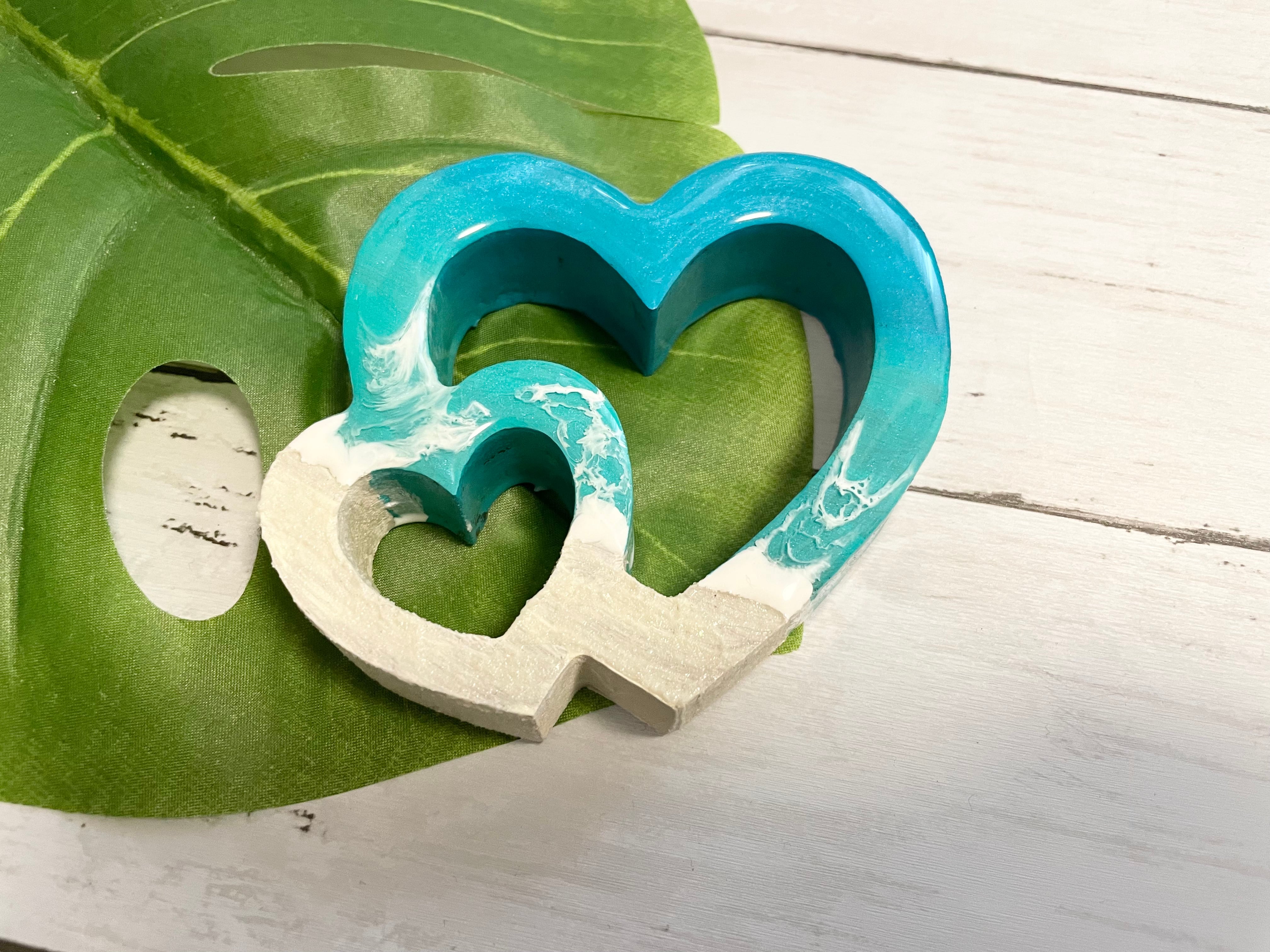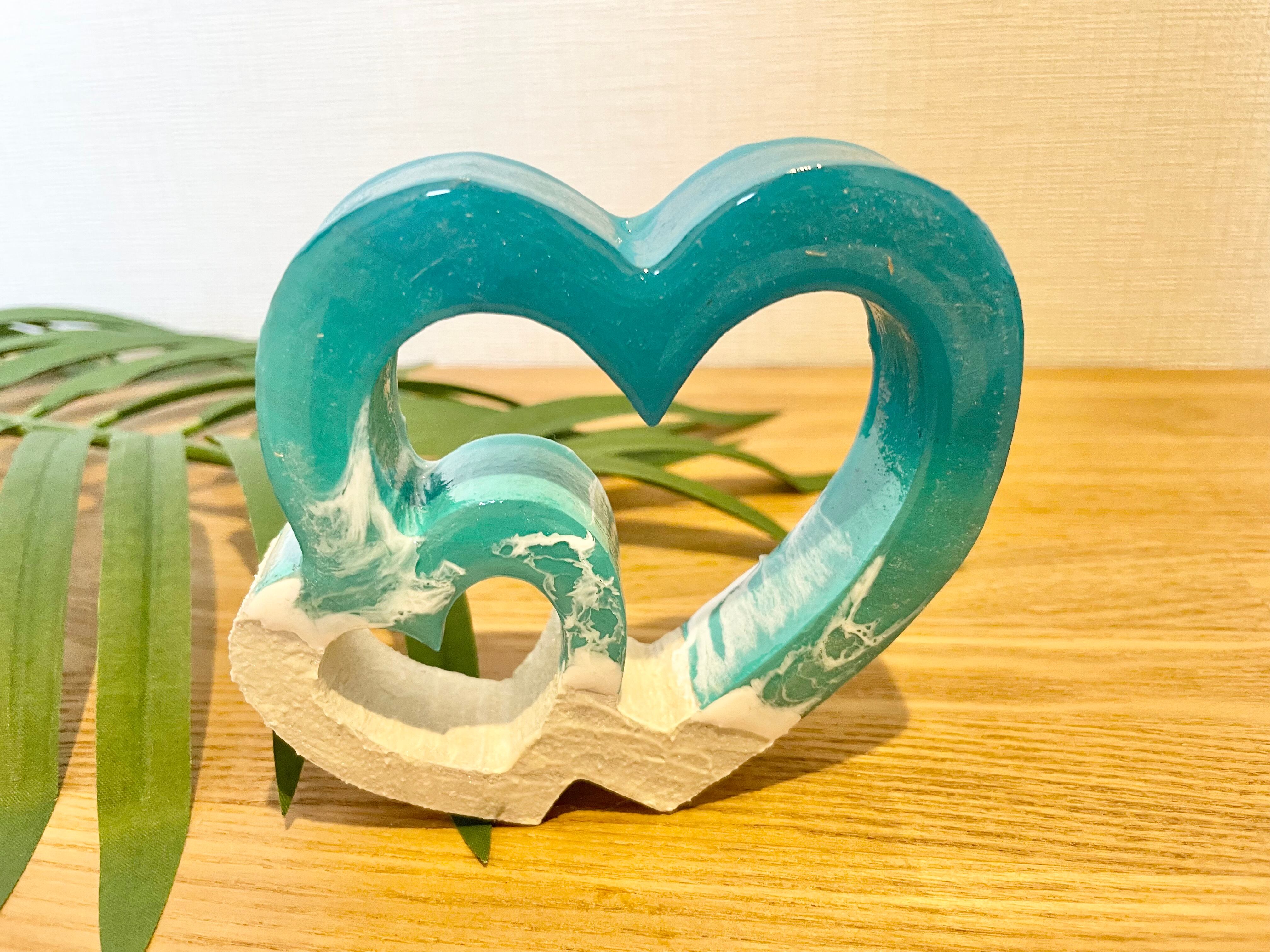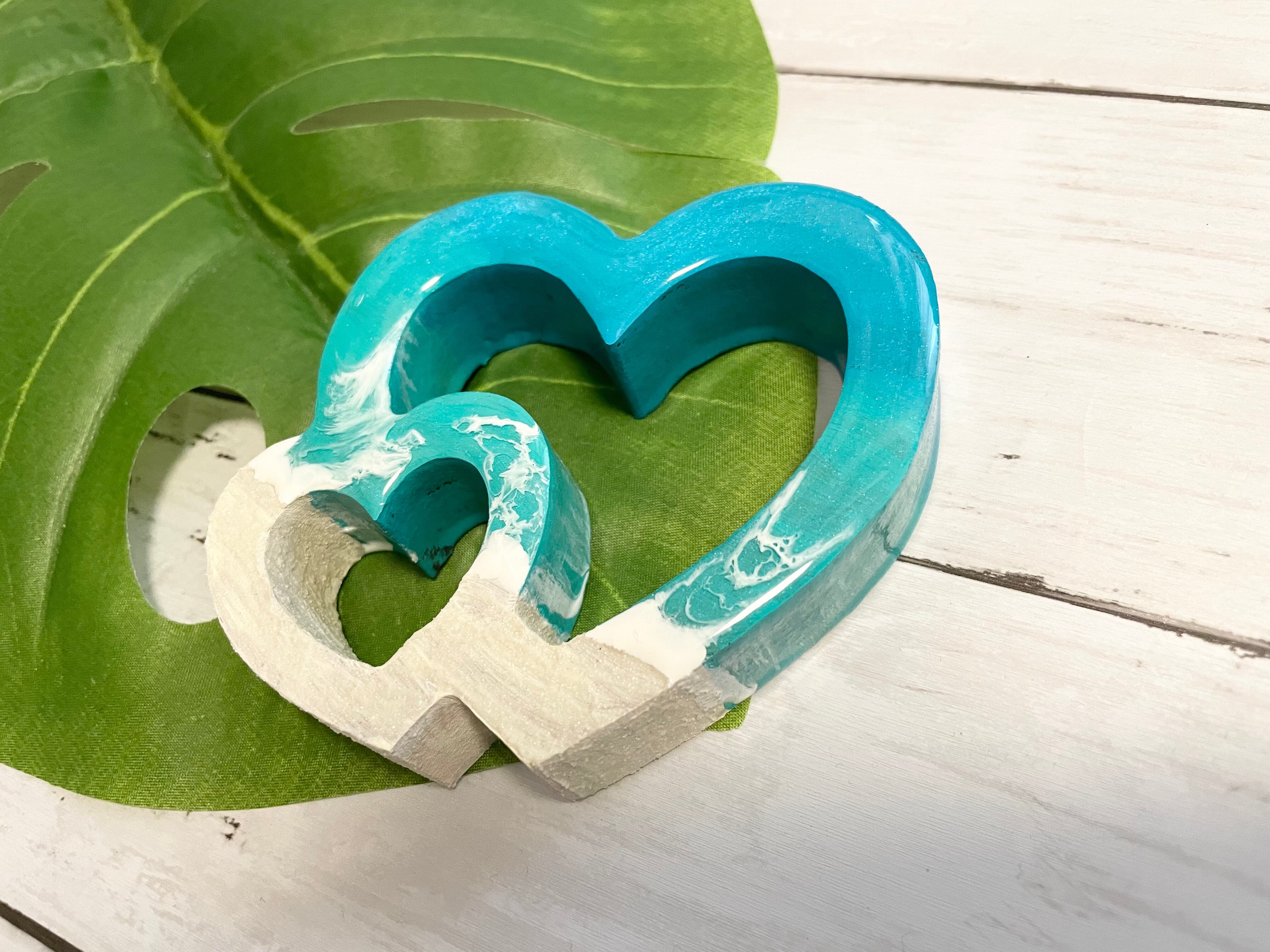 オーシャンアート 波レジンアート アルファベット ハート ♡ 海 ターコイズブルー